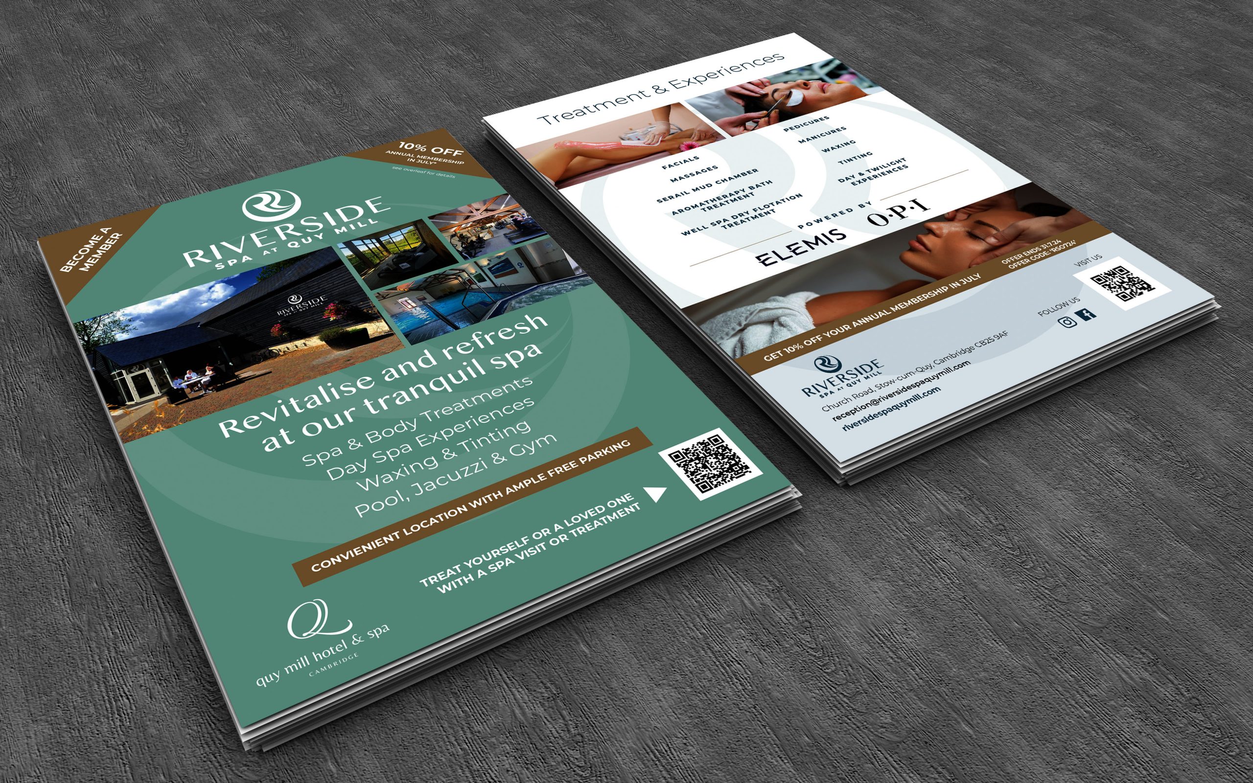 Level Up Print has proudly supported Quy Mill Hotel & Spa, Cambridge with a full range of creative marketing services designed to elevate the hotel’s brand presence and guest experience.